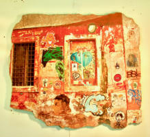 feet up to 8 feet. They simulate urban walls with images culled from a variety of countries such as Italy, France, Cuba,